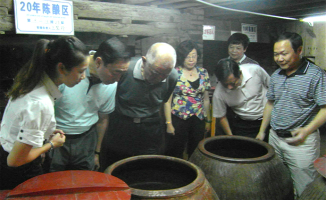2013年9月8日下午,中國(guó)輕工業(yè)聯(lián)合會(huì)榮譽(yù)會(huì)長(zhǎng)、原輕工部副部長(zhǎng)張善梅、原全國(guó)總工會(huì)書記處書記、華僑茶業(yè)發(fā)展研究基金會(huì)常務(wù)副理事長(zhǎng)李永安以及原中國(guó)茶葉總公司副總經(jīng)理、華僑茶業(yè)發(fā)展研究基金會(huì)副理事長(zhǎng)兼秘書長(zhǎng)邵曙光等一行人在縣領(lǐng)導(dǎo)的陪同下蒞臨老醋公司參觀指導(dǎo),公司領(lǐng)導(dǎo)全程陪同,熱忱接待。張會(huì)長(zhǎng)等一行領(lǐng)導(dǎo)先在醋吧了解了永春老醋的發(fā)展歷史、老醋公司的發(fā)展歷程以及獲得的諸多榮譽(yù)還有釀醋文化以及四大名醋的介紹,之后在講解員的帶領(lǐng)下參觀了老醋釀造的整個(gè)工藝流程:“從糯米蒸煮到紅曲攪拌再到紅酒發(fā)酵再到最后的灌裝成品。”每個(gè)過程都延續(xù)了傳統(tǒng)優(yōu)良工藝,秉承精益求精釀造放心食醋的釀醋精神。.jpg)