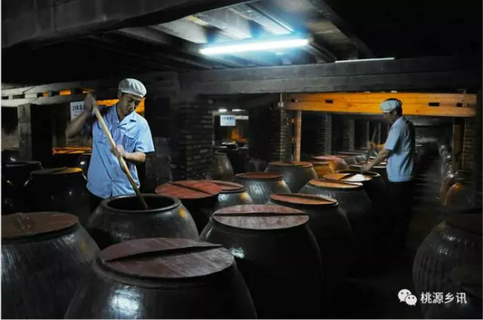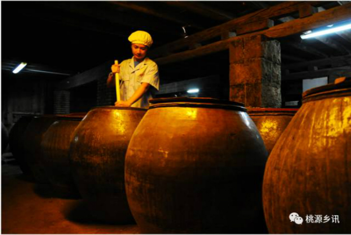在窖藏車間,釀醋師傅在對(duì)每個(gè)陶制醋缸里的醋進(jìn)行攪拌,讓缸里的醋充分吸收氧氣、活動(dòng)起來(lái),以便更好的發(fā)酵。